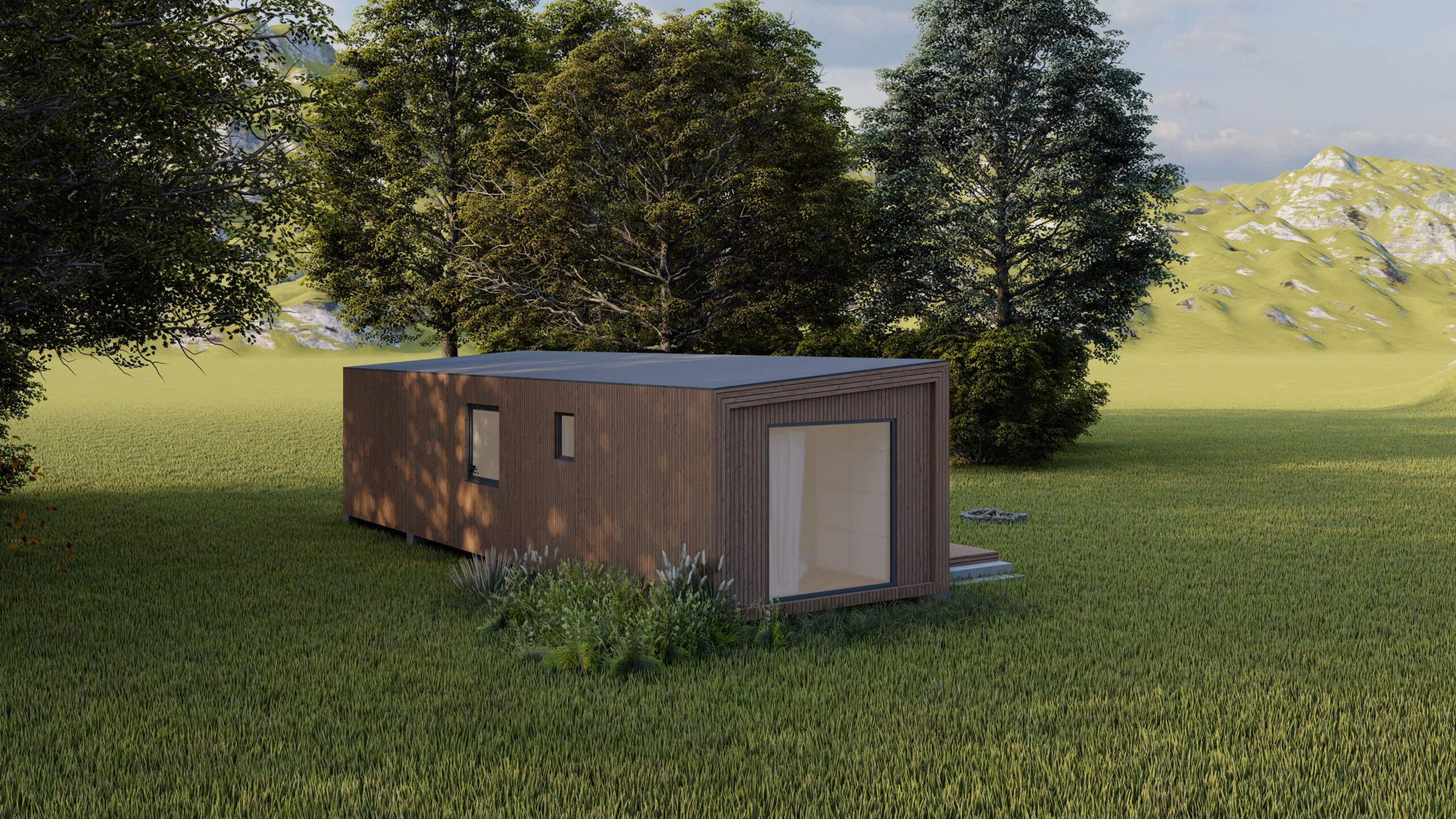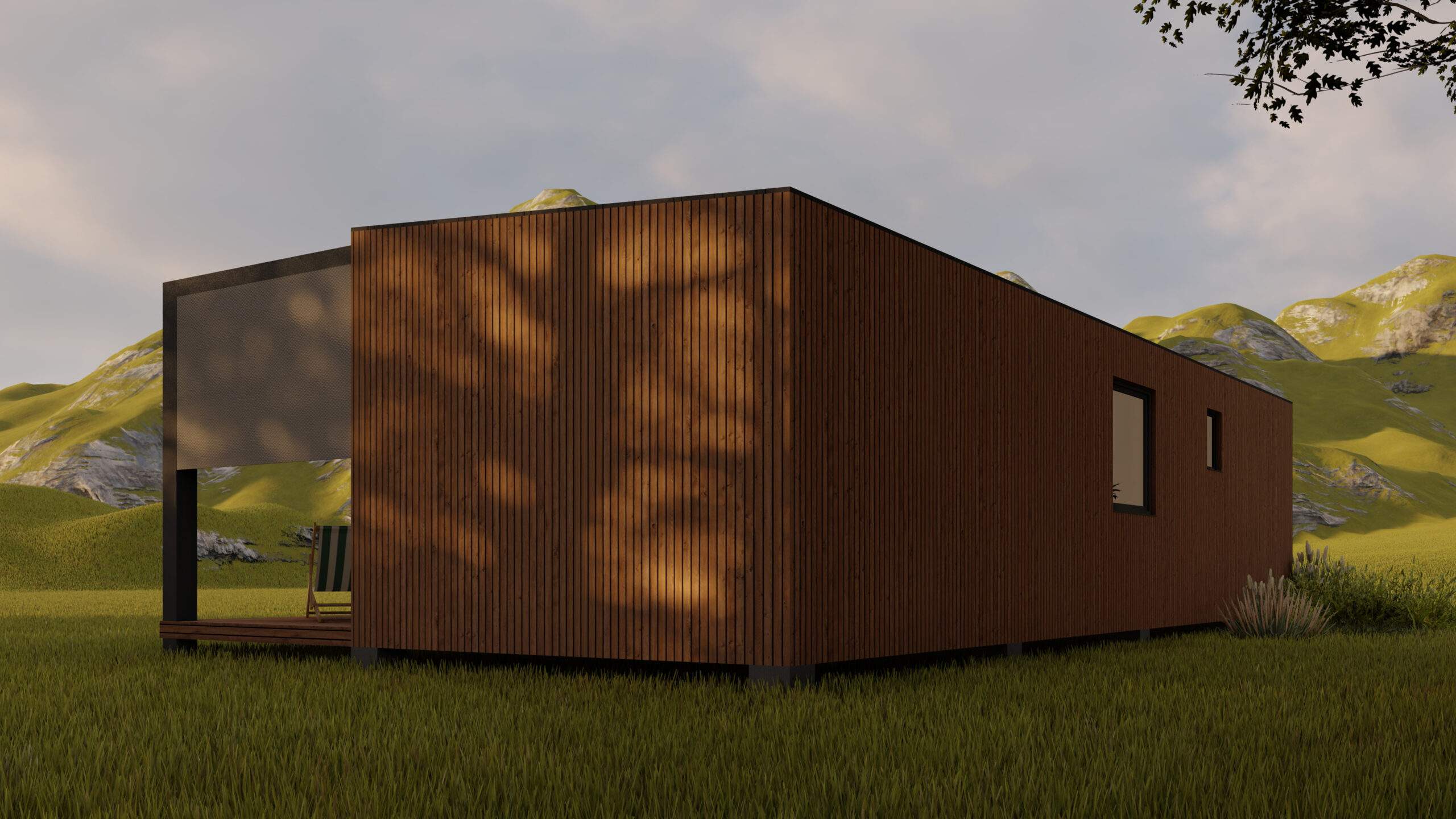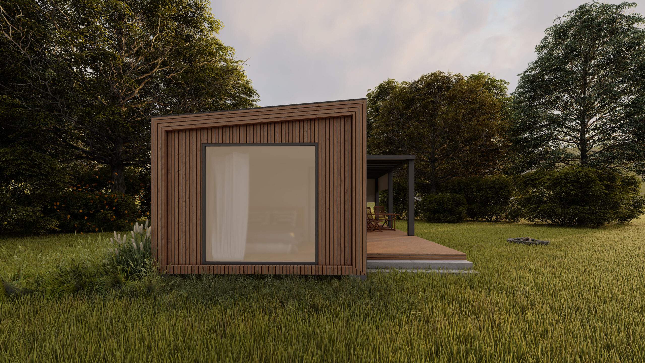 - exteriér modulu s kompletne zhotovenou fasádou vrátane okien, strechy a povrchovej úpravy