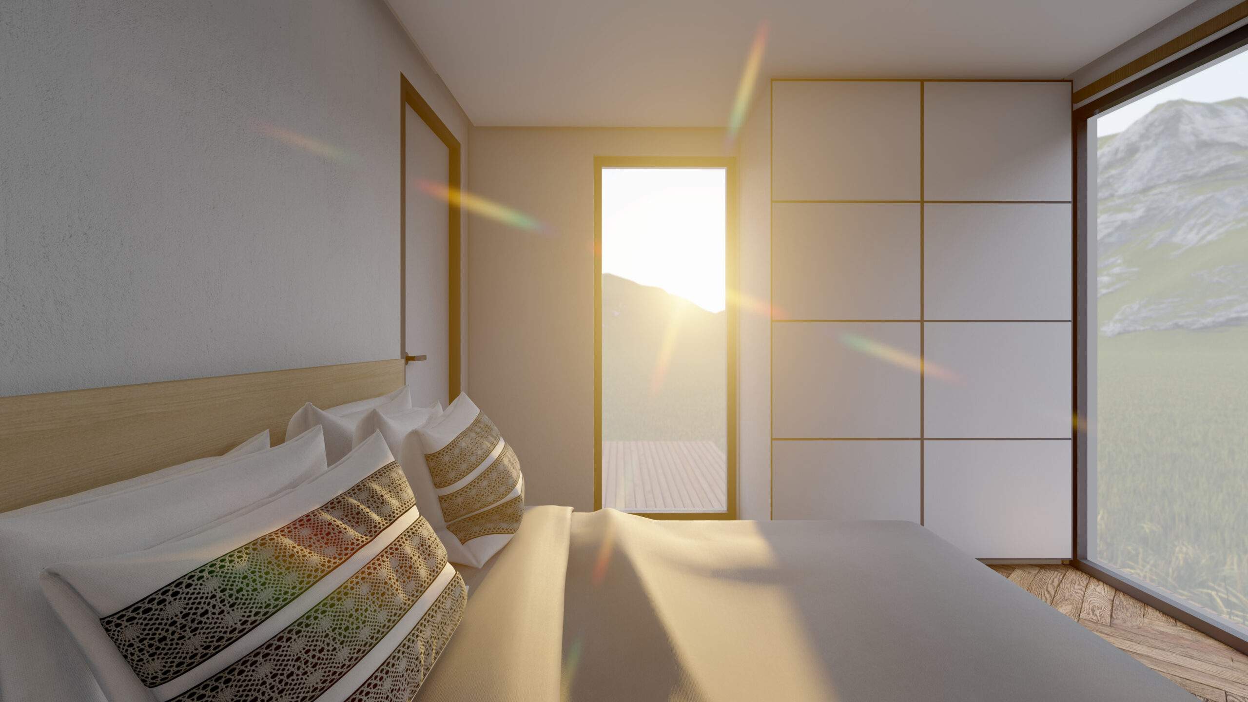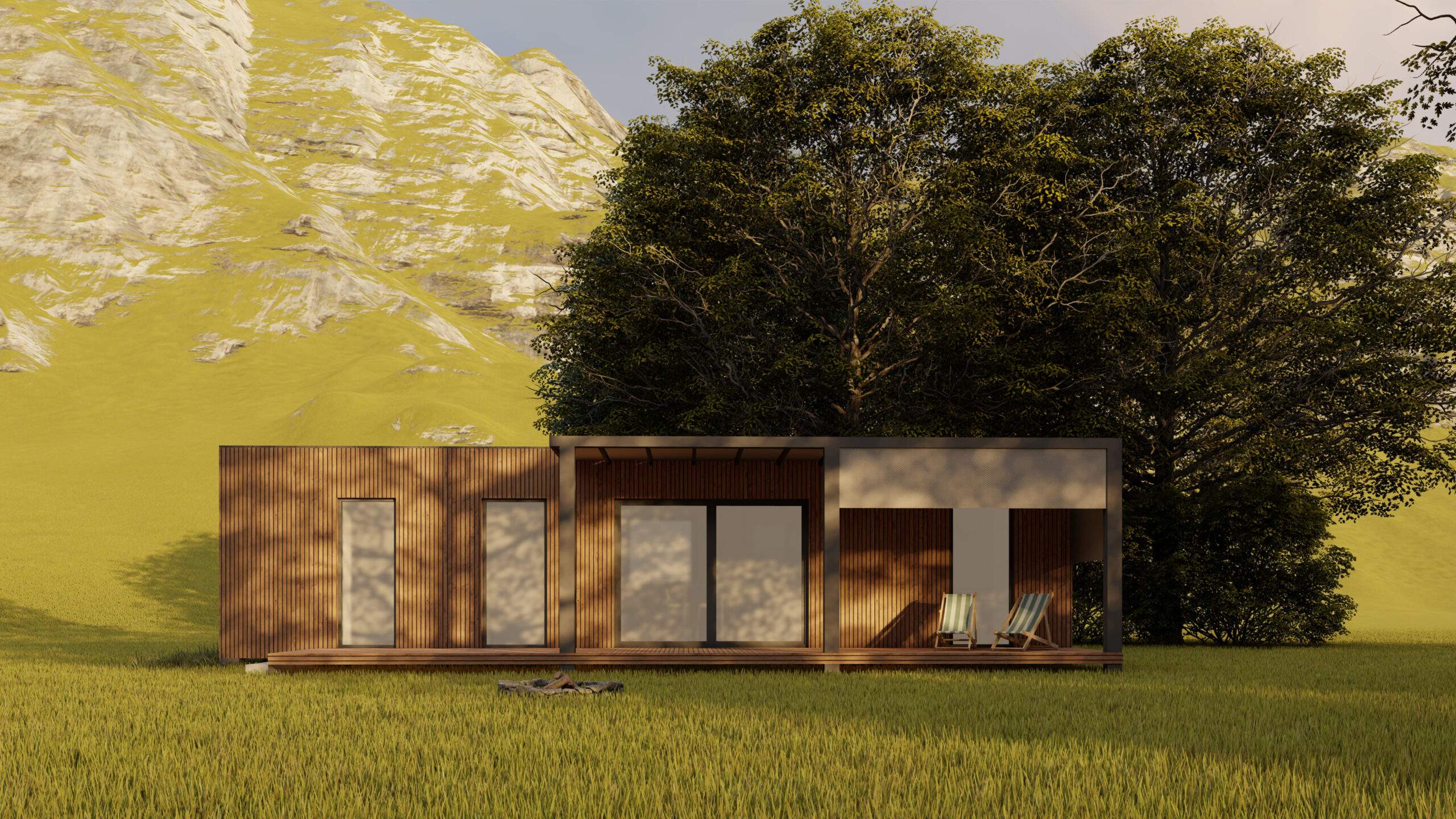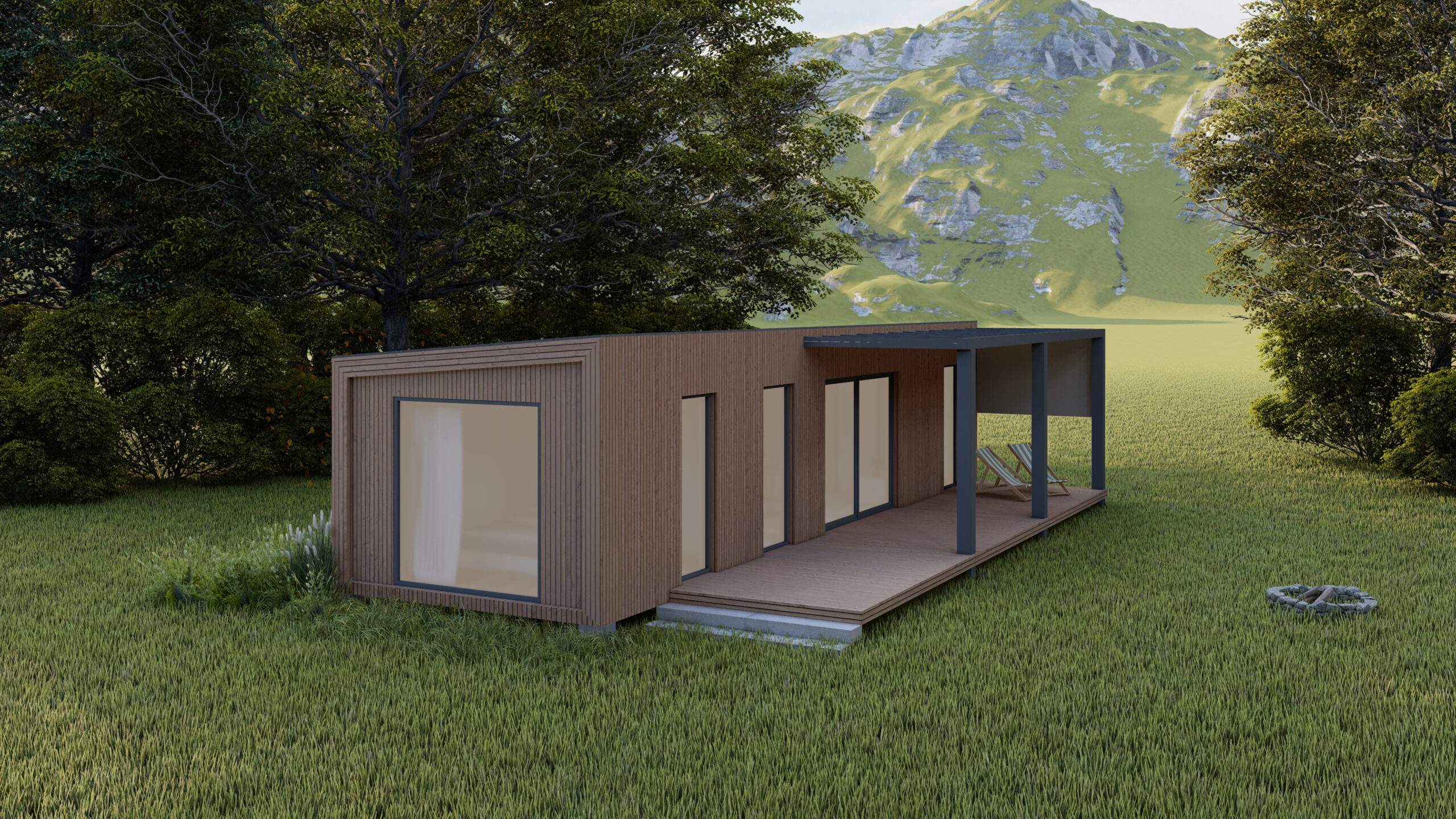 - exteriér modulu s kompletne zhotovenou fasádou vrátane okien, strechy a povrchovej úpravy