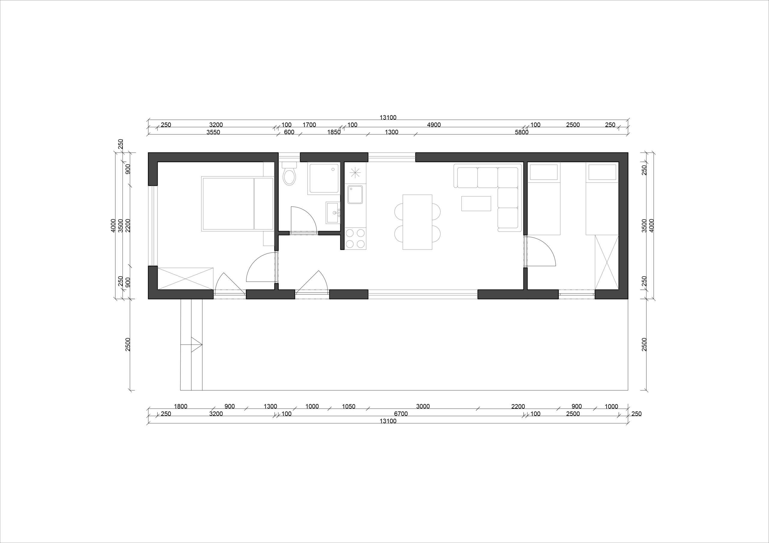 Náš najväčší modulový dom Edilex s úžitkovou plochou 44 m2 a zastavanou plochou 52 m2 je ideálny na trvalé bývanie mladej rodiny, alebo ako veľká chata či víkendový dom. Svojou dispozíciou ponúka dve samostatné izby a veľkú kuchyňu spojenú s obývacou izbou.